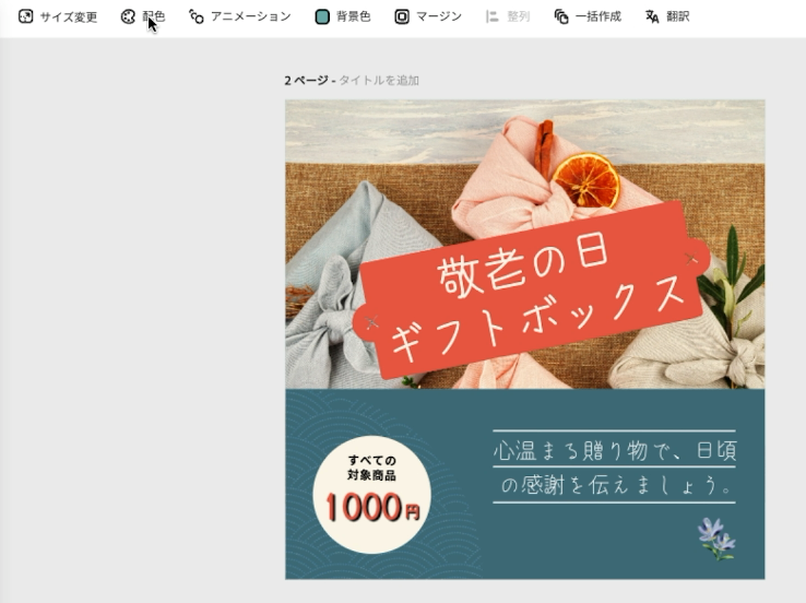 ワンクリックで、ページ全体、画像、イラストなどの色をブランドカラーに変更することができます。