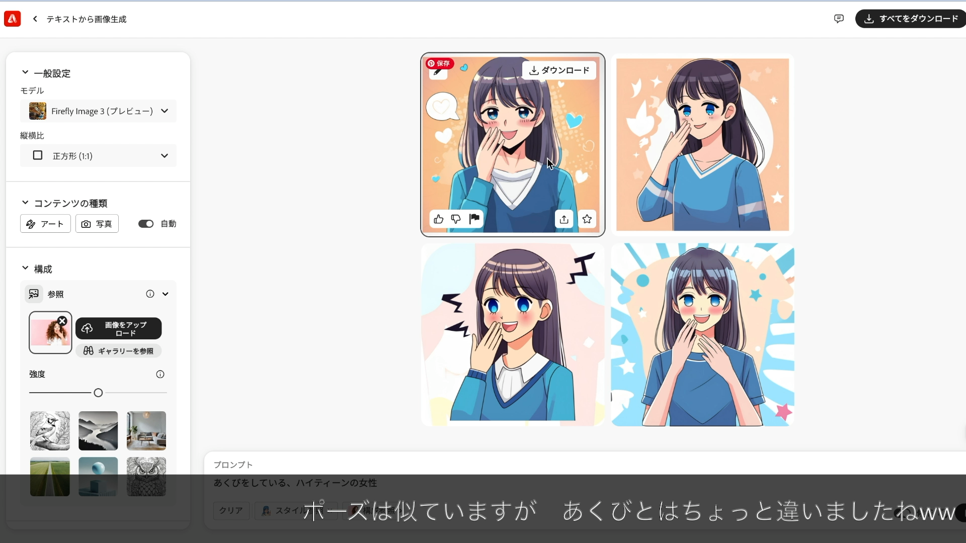 Firefly Image 3は、従来のバージョンに比べて、より鮮明でリアルな画像を生成することが可能となりました。これは、Adobeが最新のAI技術を取り入れ、膨大なデータセットを用いてモデルを訓練した結果です。特に、ディテールの描写や色彩の再現性が大幅に向上しており、プロフェッショナルなクリエイティブワークにおいても十分に使用できる品質を実現しています。