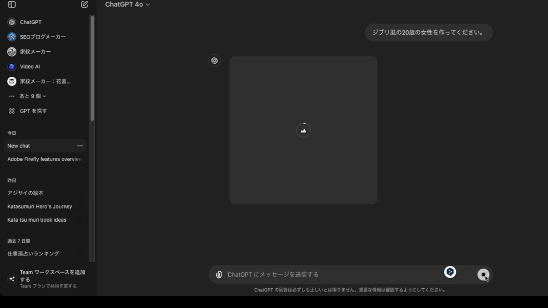 プロンプト:ジブリ風の20歳の女性を作ってください→