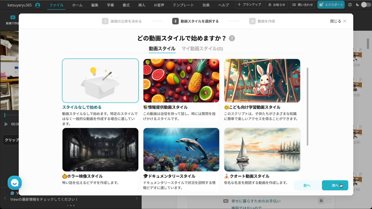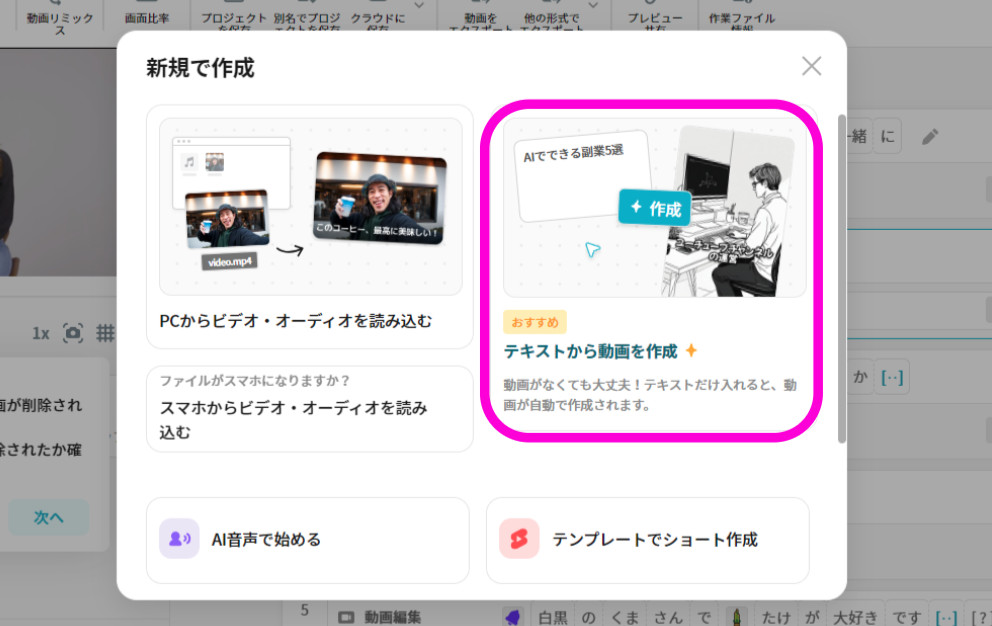 - Vrewを起動し、テキストから動画を作成します。